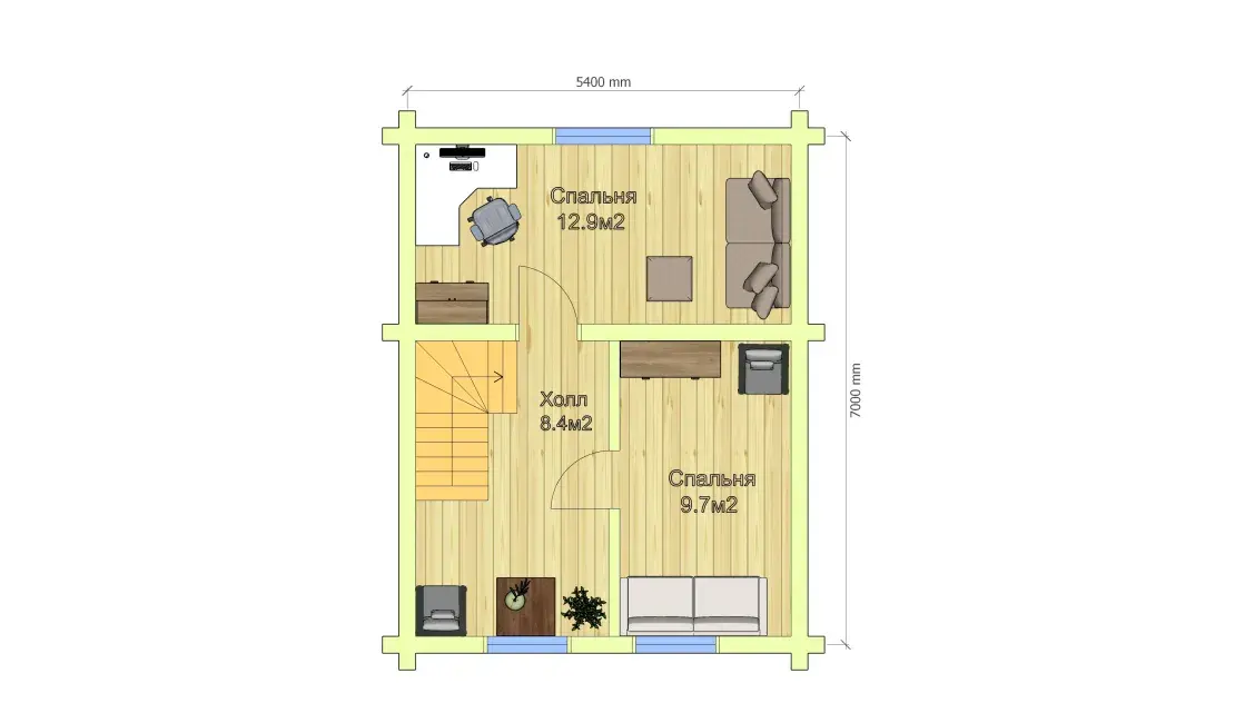 Ведущий тренд 2025-2026 годов - в домах для постоянного проживания все перегородки внутри из бревна, а не каркасные. Цена качественной каркасной перегородки равна цене стены из бревна, разница в сроках оплаты - в период сборки или в период отделки. Проект 1596 - практически полный аналог нашего выставочного дома на Пятницком шоссе, но если в выставочном доме есть каркасные перегородки, то здесь все срубовые. Такой сруб отлично показывает себя при усадке и эксплуатации, это дом на века.