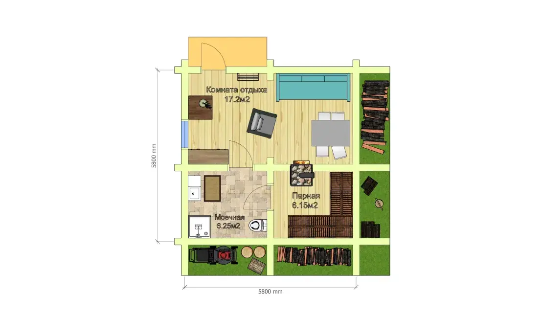 Бани с дровником: квадратный сруб-шестистенок, сборка, доставка -все включено.