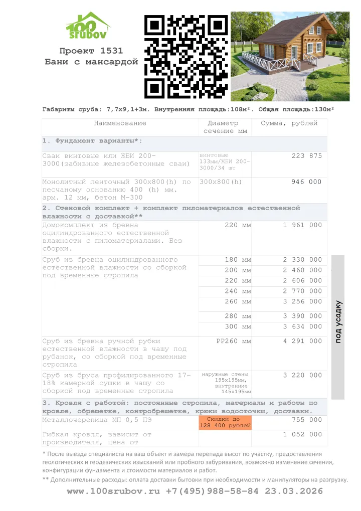 ✔️100срубов: готовый каталог популярных проектов и услуги индивидуального проектирования, изменение проекта бесплатно.