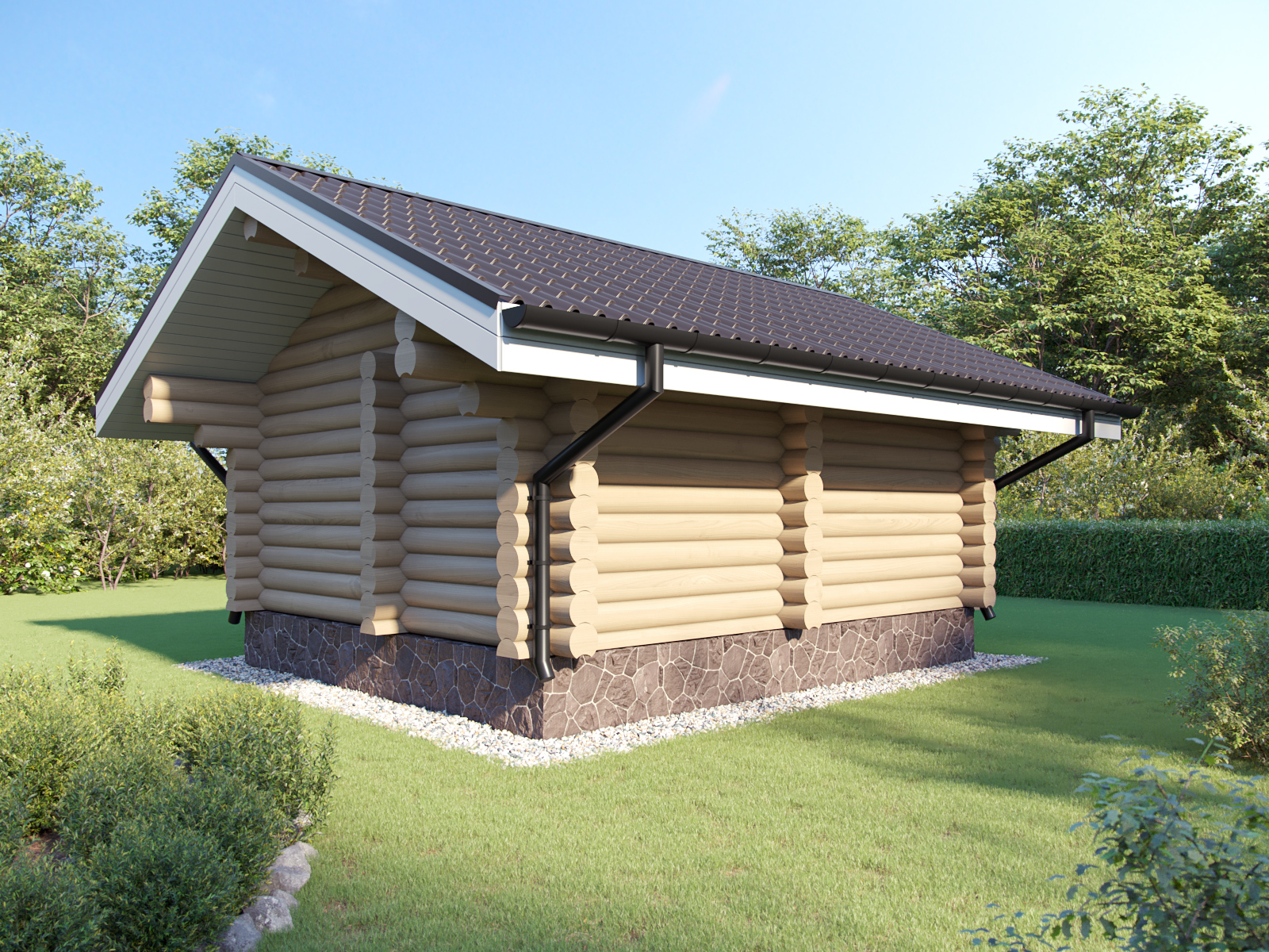 Если вы не готовы идти на компромисс, то баня 5х5 по проекту 803 - ваш оптимальный выбор. Материал стен бани - оцилиндрованное бревно диаметрами от 180 мм до 320мм или профилированный брус. Перегородка между парной и моечной каркасная.
