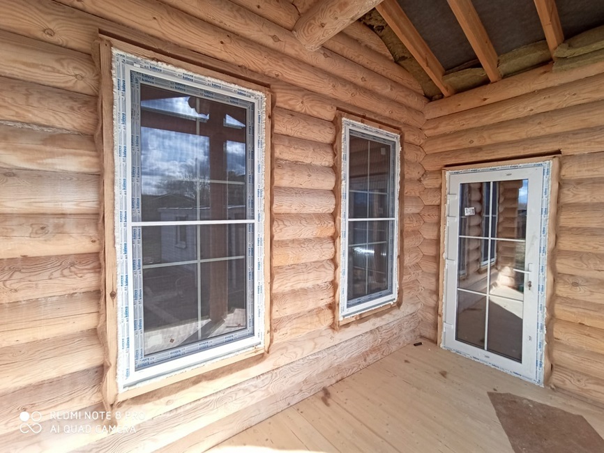 выполнена окосячка проемов и установлены входная дверь и окна: