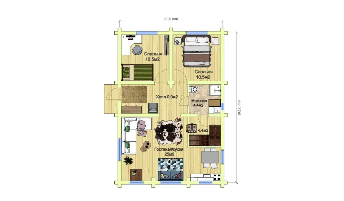 В 2025 году, когда тренд на одноэтажные дома и бани продолжает набирать популярность, мы предлагаем вам баню с двумя спальнями, общей комнатой отдыха и традиционными парной и моечной.