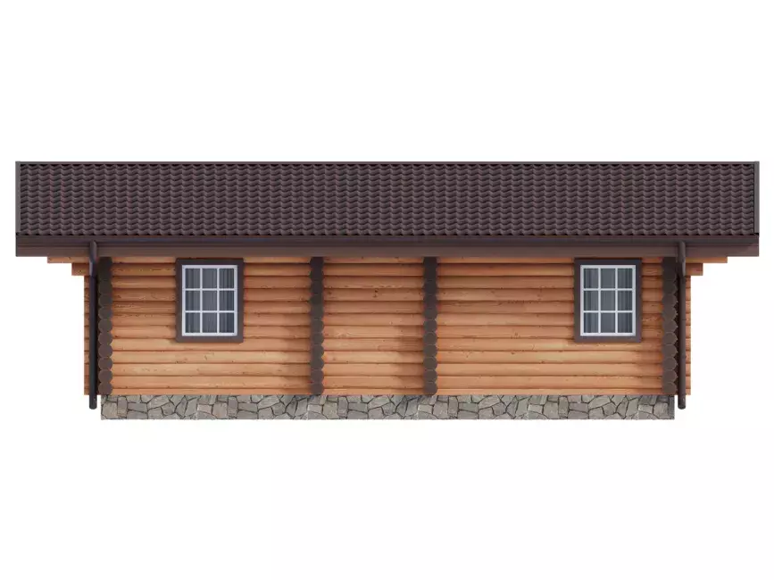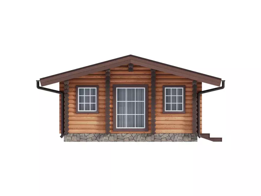 Это комфортный загородный коттедж, доступный по стоимости, экологичный и безопасный. Сруб-шале по проекту #1436 спроектирован с двумя комнатами-спальнями, которые также играют роль рабочего кабинета. Перегородки между комнатами капитальные, бревно. Гостиная с панорамными окнами, совмещенная с кухней. Открытый холл и небольшой санузел. Крыша двускатная, пологая, в стиле шале. Ширина сруба 6,9 м, длина 9,9 м.