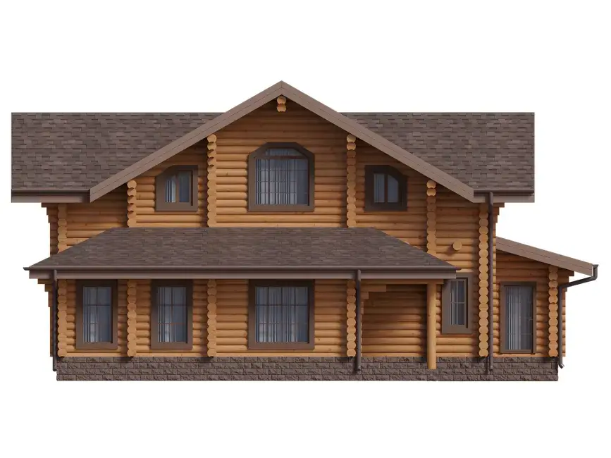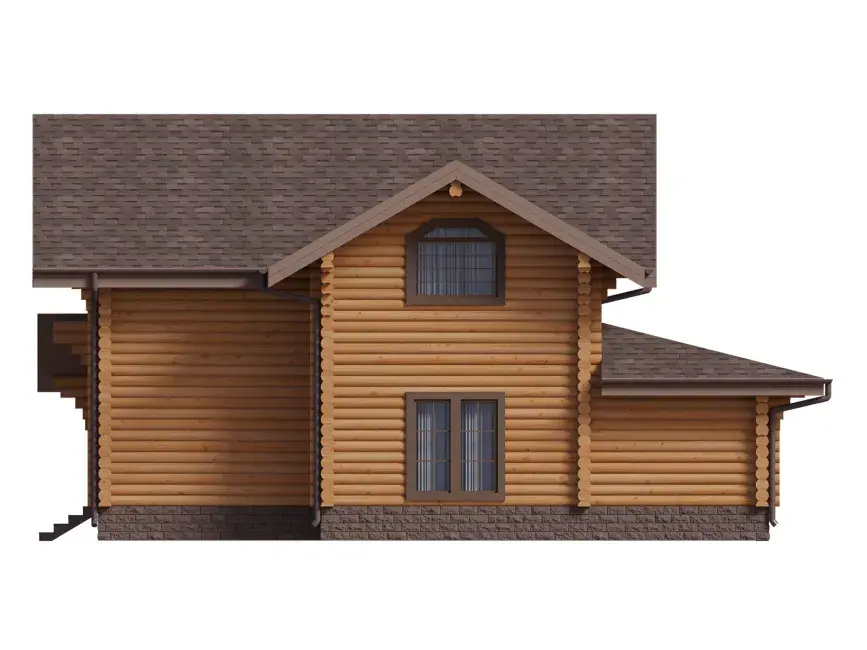 Главная особенность проекта дома с мансардой #1477 - все внутренние стены из бревна.