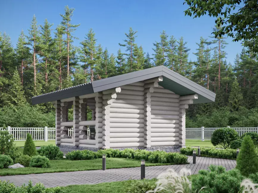 Беседка из настоящего бревна на загородном участке - место для отдыха и релаксации. Внутри сруба можно быть наедине с природой, читать книгу, пить чай или просто наслаждаться тишиной и спокойствием.