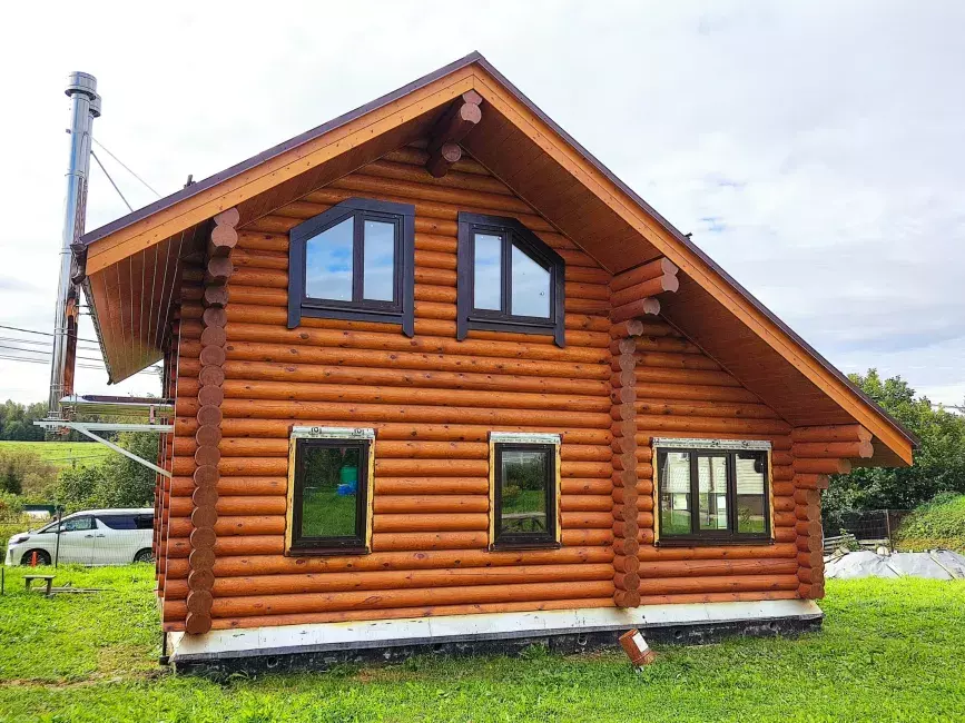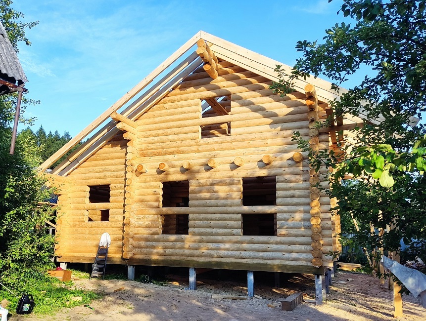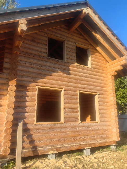 Сборки и отделки домов и бань с мансардным этажом под усадку и под ключ из оцилиндрованного бревна по проекту 122: