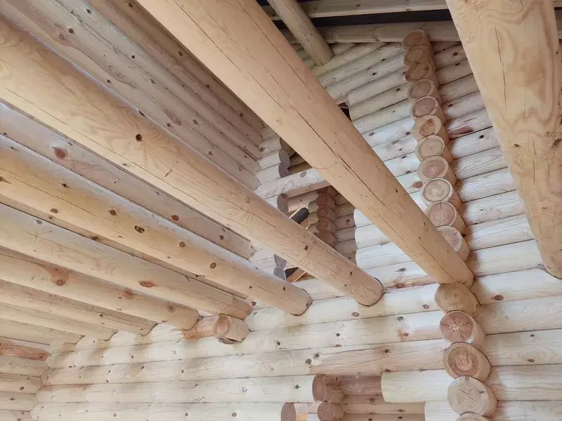 - покраска стен сруба внутри 2 слоя, раскладки и покраска потолка
