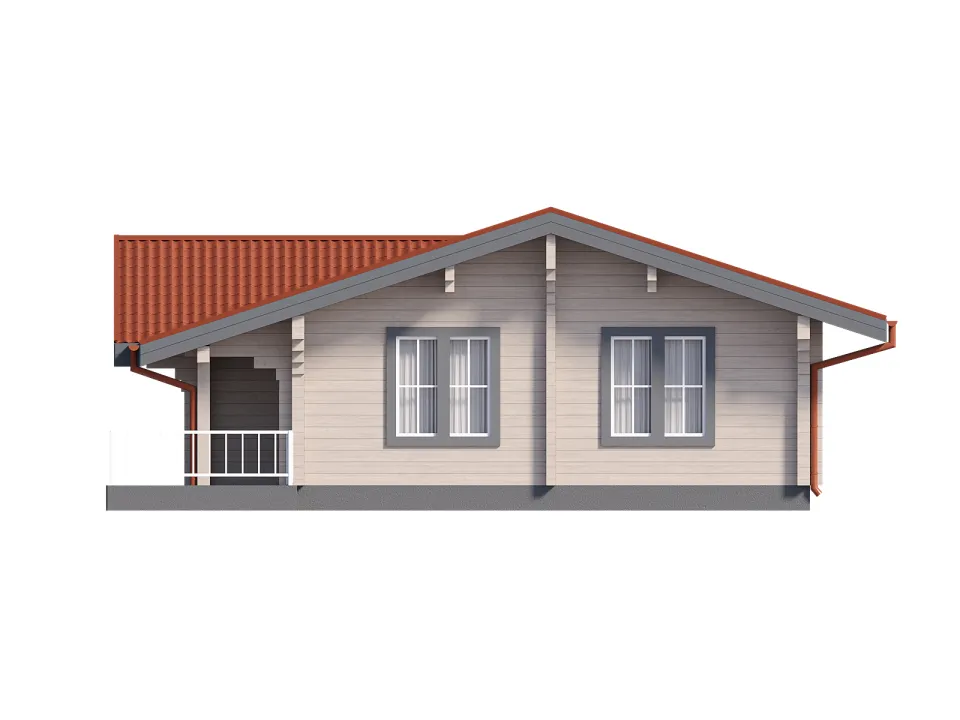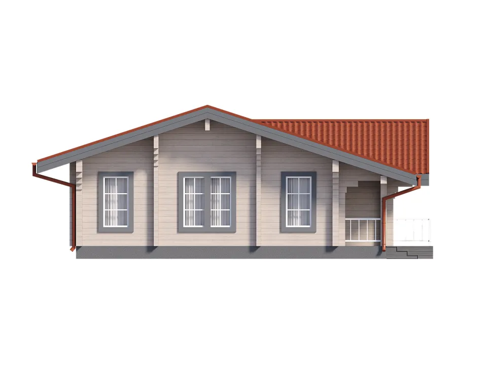 Состав помещений проекта: три спальни, одна из которых мастер спальня со своим санузлом, есть и общий санузел. Техническое помещение, тамбур-прихожая, гостиная и кухня с выходом в сад и на террасу 28 м2.