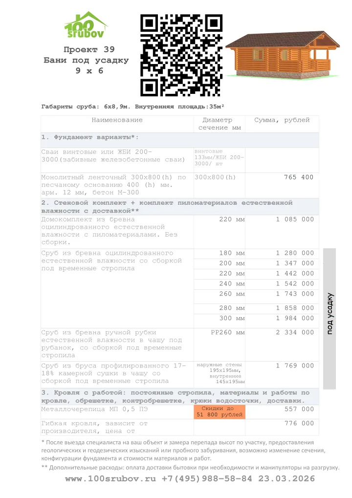 Представляем также наши бани из бруса под усадку от компании 100срубов: