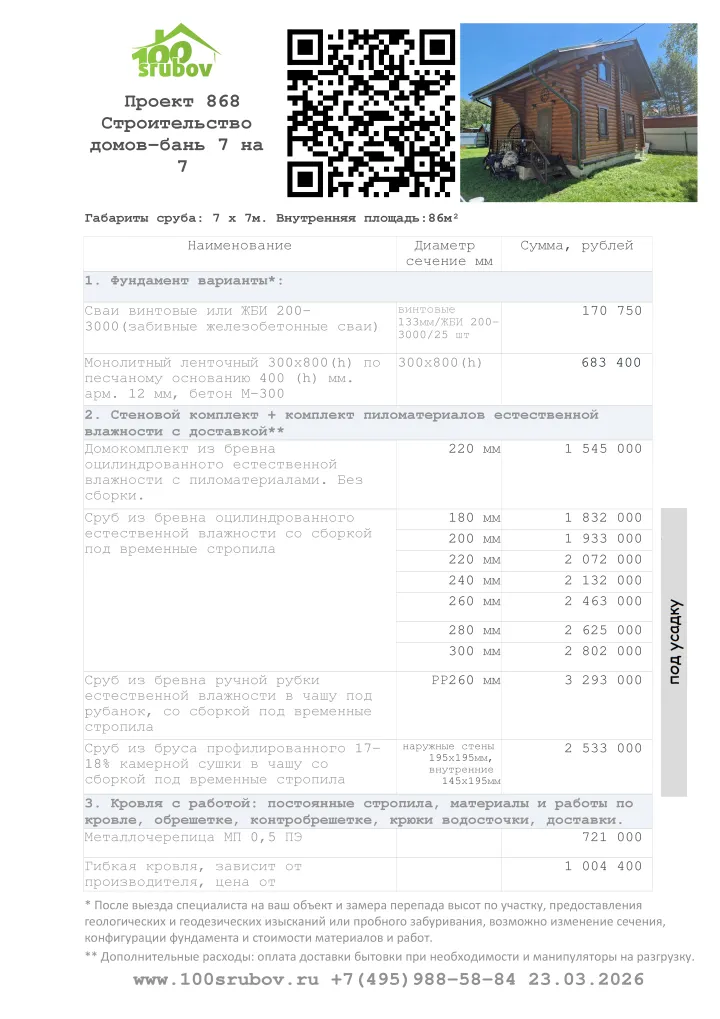 ✔️100срубов: готовый каталог популярных проектов и услуги индивидуального проектирования, изменение проекта бесплатно.