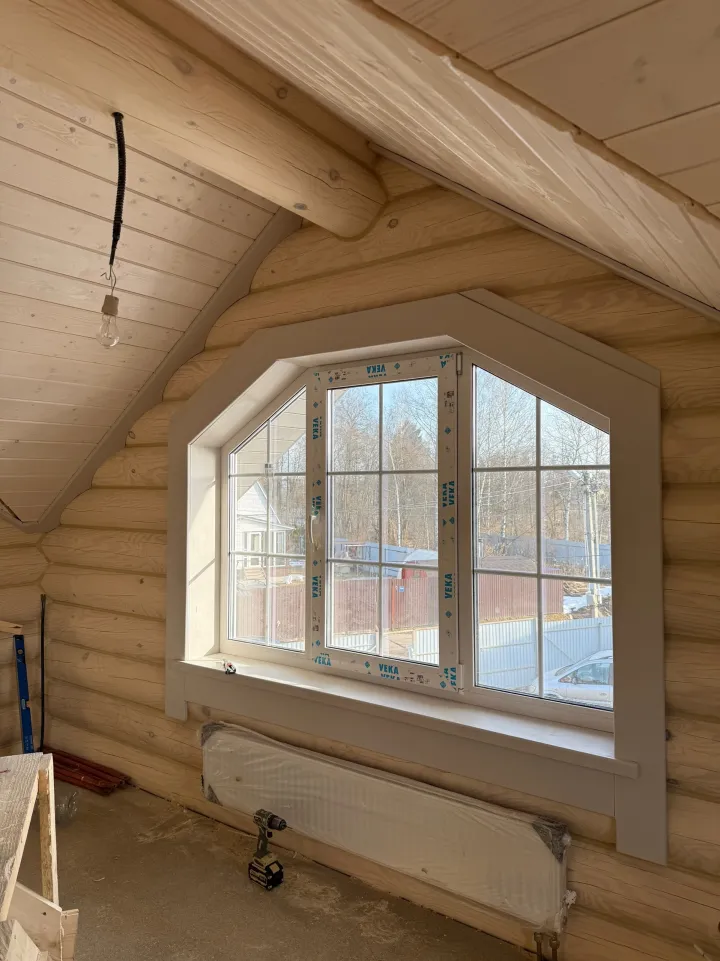 - отделка проемов сруба окон наличниками с двух сторон с покраской
