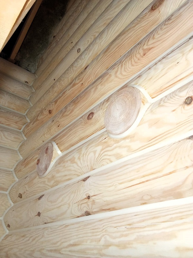 - потолки 1 этажа, подшив имитация бруса с покраской