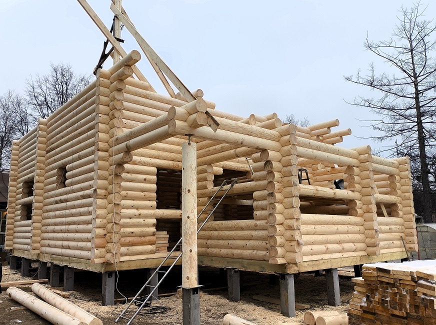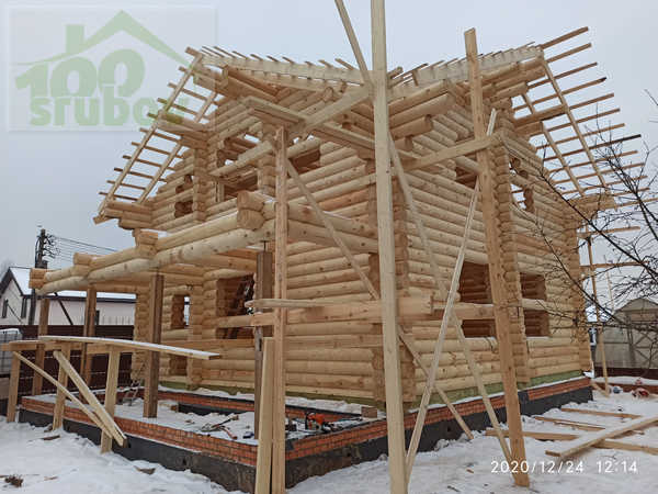 Видео сборки сруба в декабре 2020 года под временные стропила.
