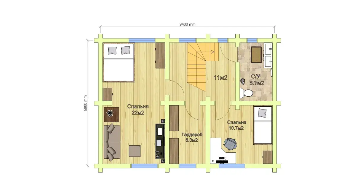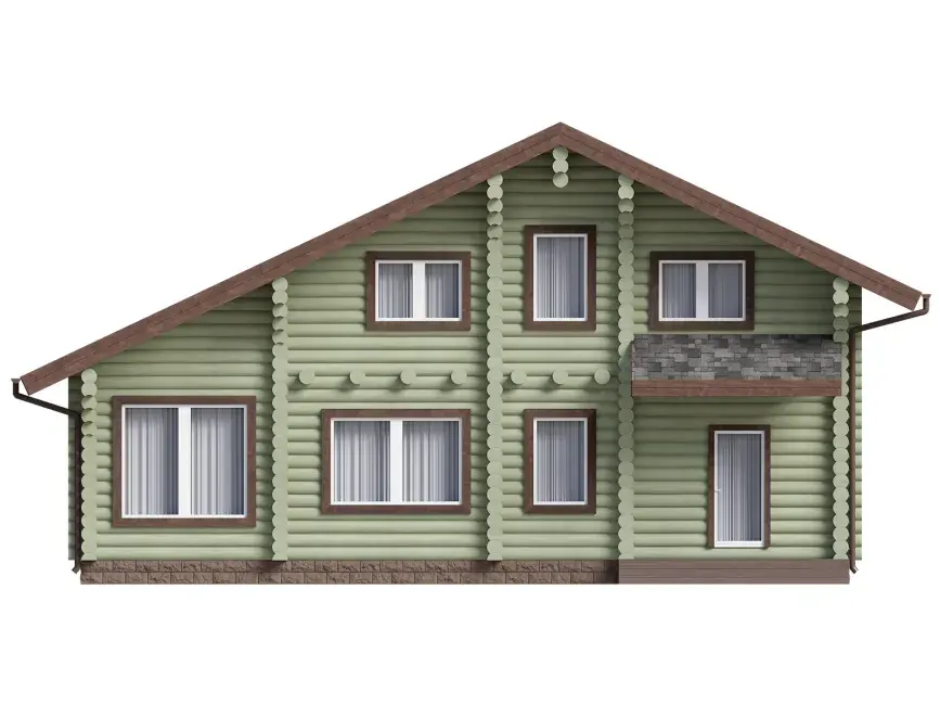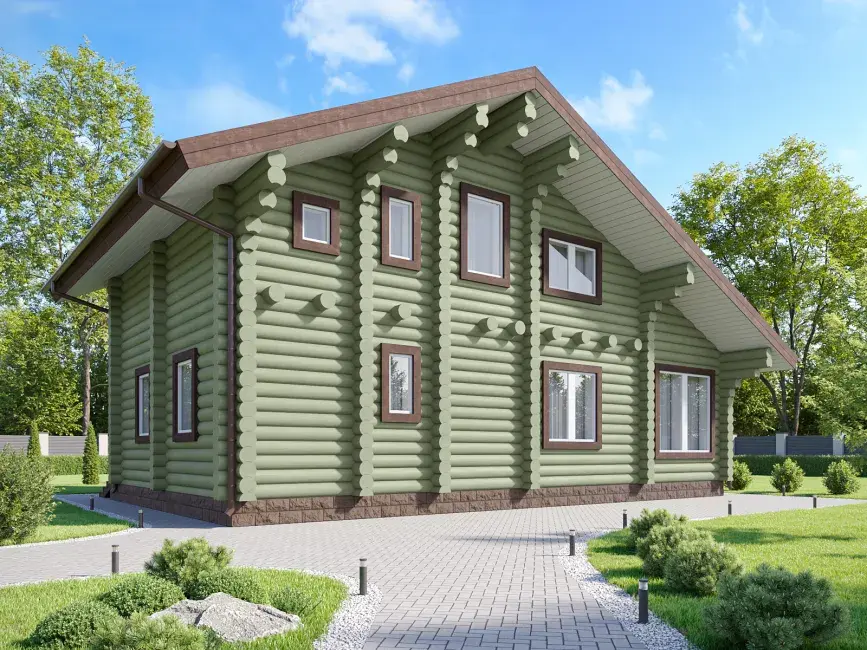 Высокие потолки сруба-дома с мансардой по проекту 1572 создадут ощущение простора, а деревянные стены долгие годы будут хранить аромат сосны.