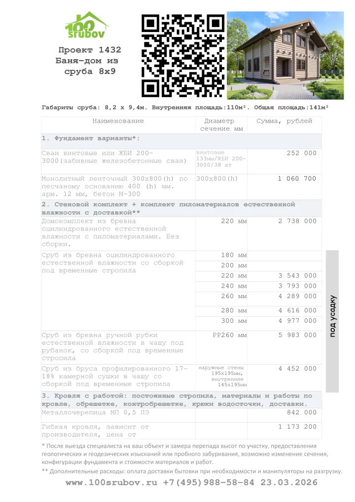 ✔️100срубов: готовый каталог популярных проектов и услуги индивидуального проектирования, изменение проекта бесплатно.